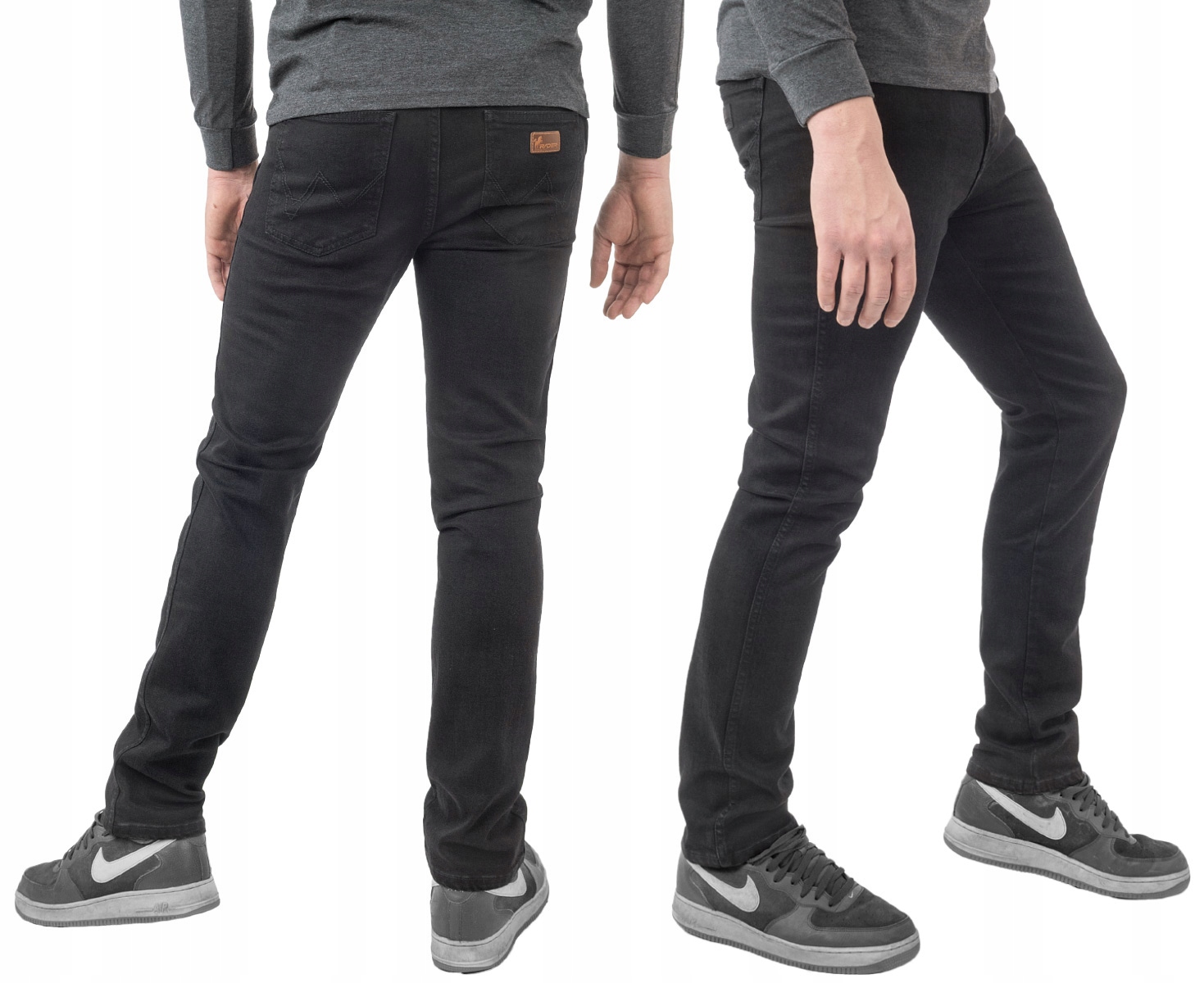 Černé pánské džíny polské firmy RADER se standardním pasem a klasickou rovnou nohavicí jsou také jedním z nejčastěji volených modelů kalhot. Vyrobeno z vysoce kvalitní husté, odolné a pevné bavlněné tkaniny „Denim Super Black“. Zapínají se na krytý zip a kovový knoflík podepsaný logem firmy. Na přední straně mají dvě zaoblené kapsy a menší kapsu tzv. bilonovku a dostatečně klasické kapsy našité jako u běžných džínových kalhot. V pase poutka umožňující stylizaci s páskem. Nejnáchylnější k poškození místa jsou vyztužena dodatečnými prošíváními a kovovými nýty.