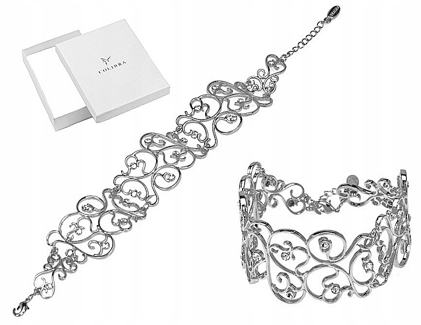 Stříbrný náramek od Colibra, zdobený ručně krystaly Swarovski, vyrobený z klenotnické slitiny trvale postříbřené, v souladu s nejvyšším zlatnickým uměním a důrazem na detail, mají originální etikety firemní.